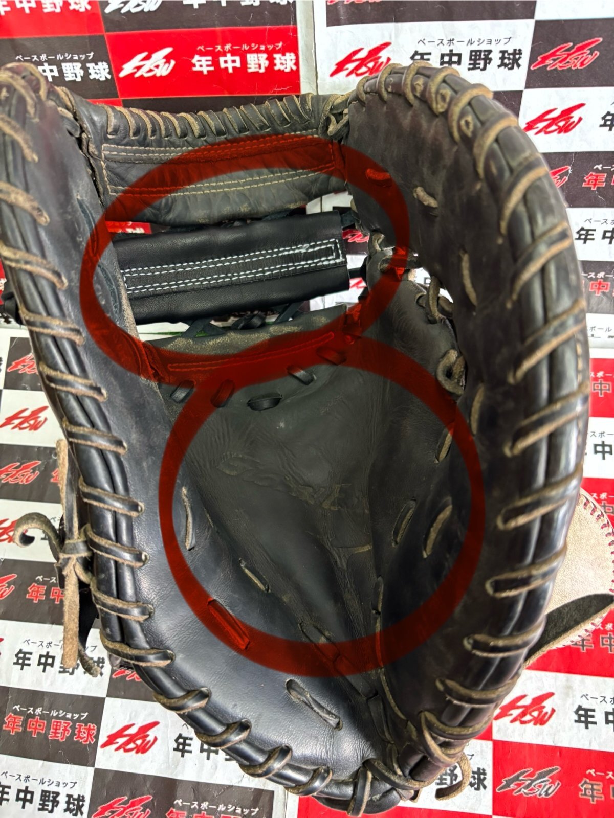 やっぱりミットは通常の野手の10倍は受けるので傷みも激しく、特にウェブや捕球面が破損しますね!!