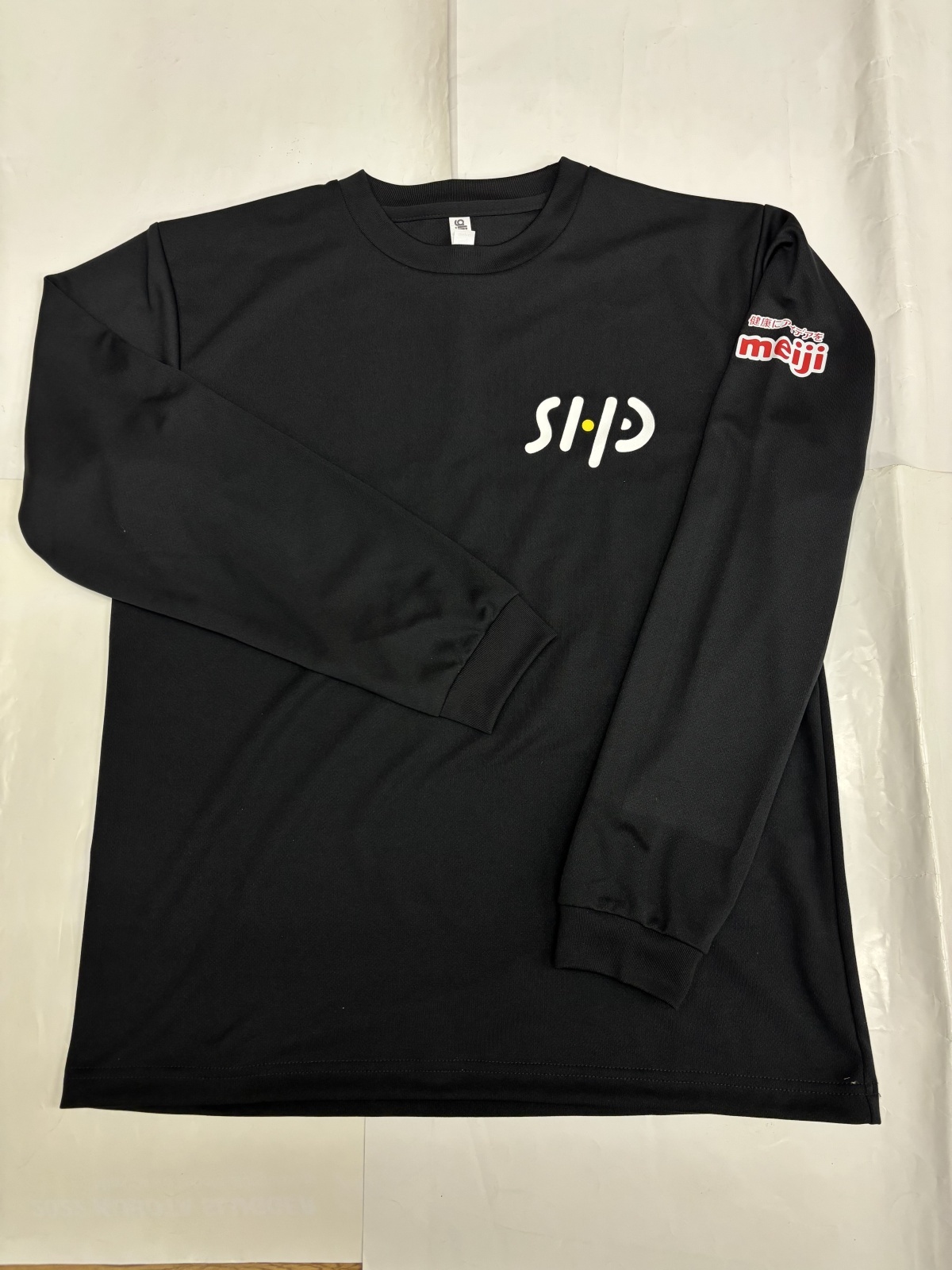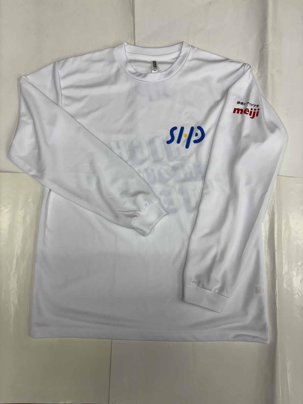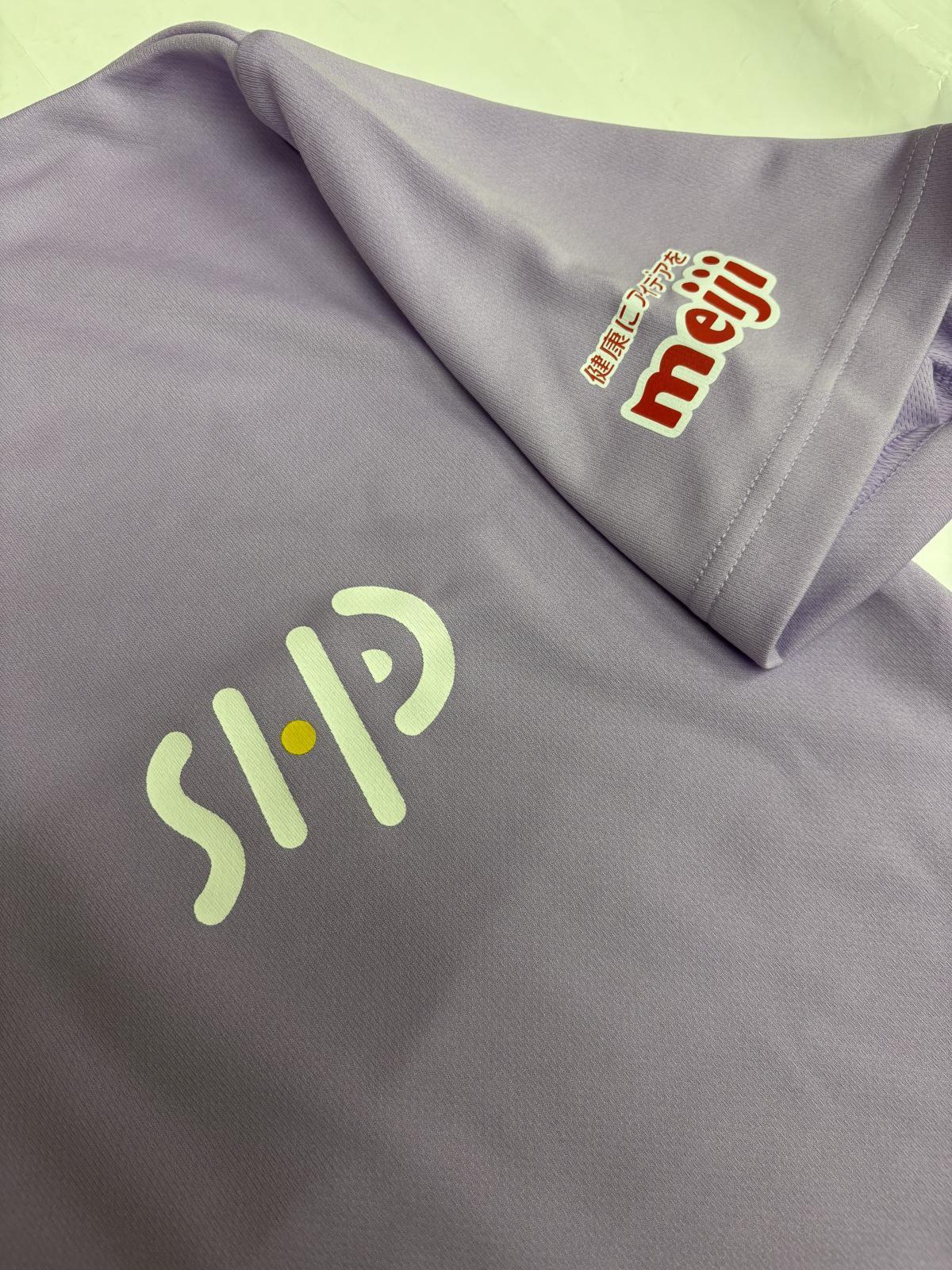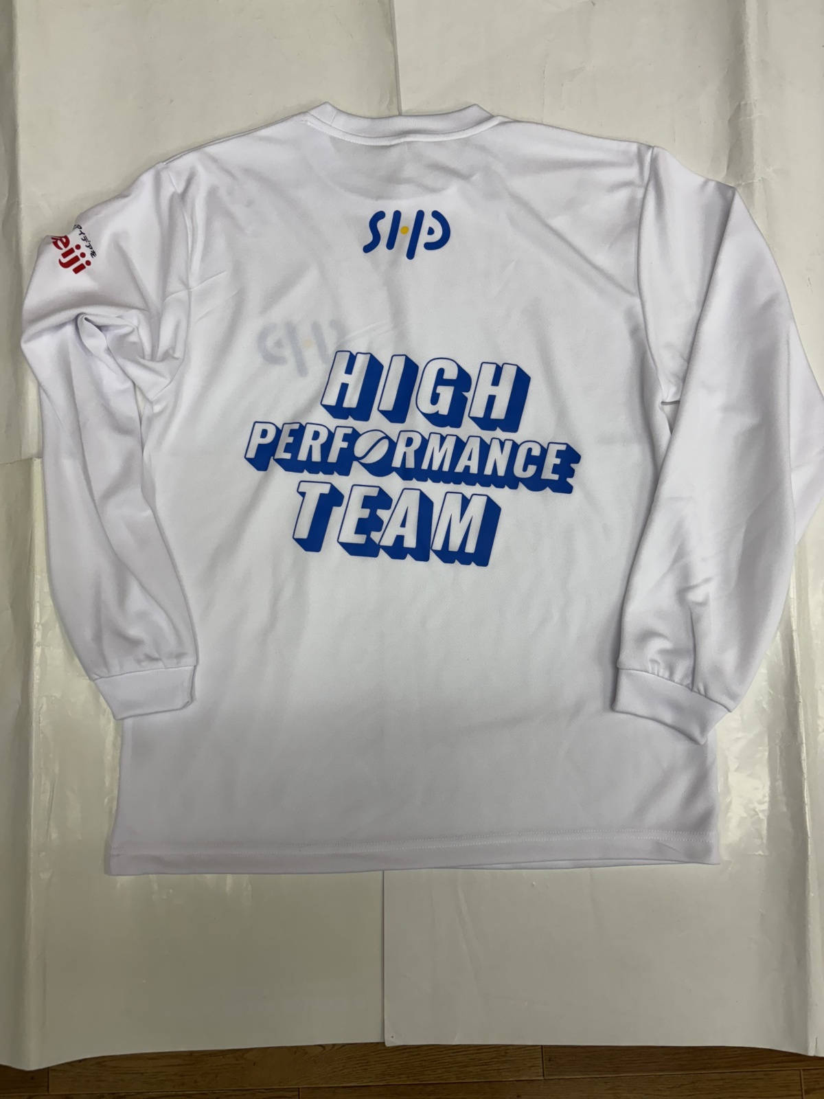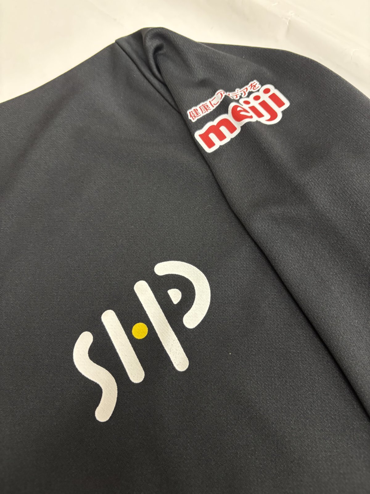 「このHPTというチームには【明治】さんが栄養サポートしてくれています。今回作成したチームウェアの左腕には明治さんのロゴのついています。」