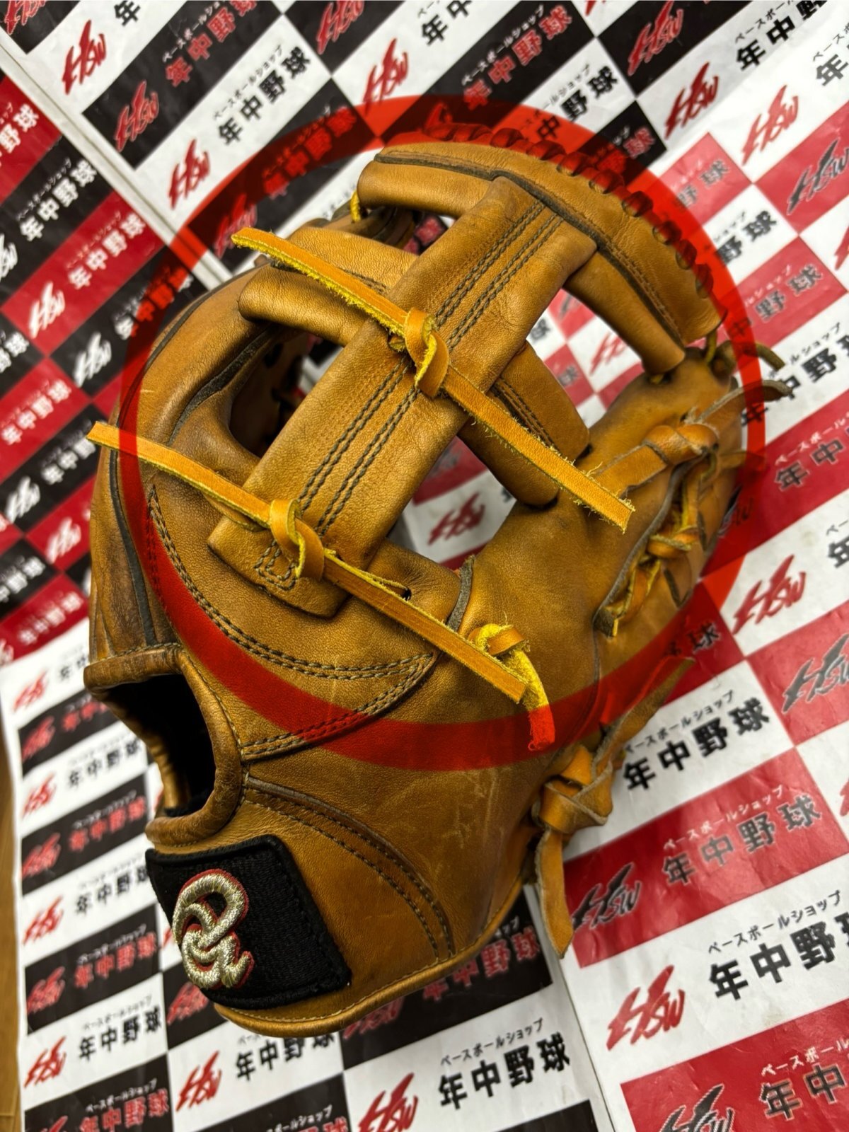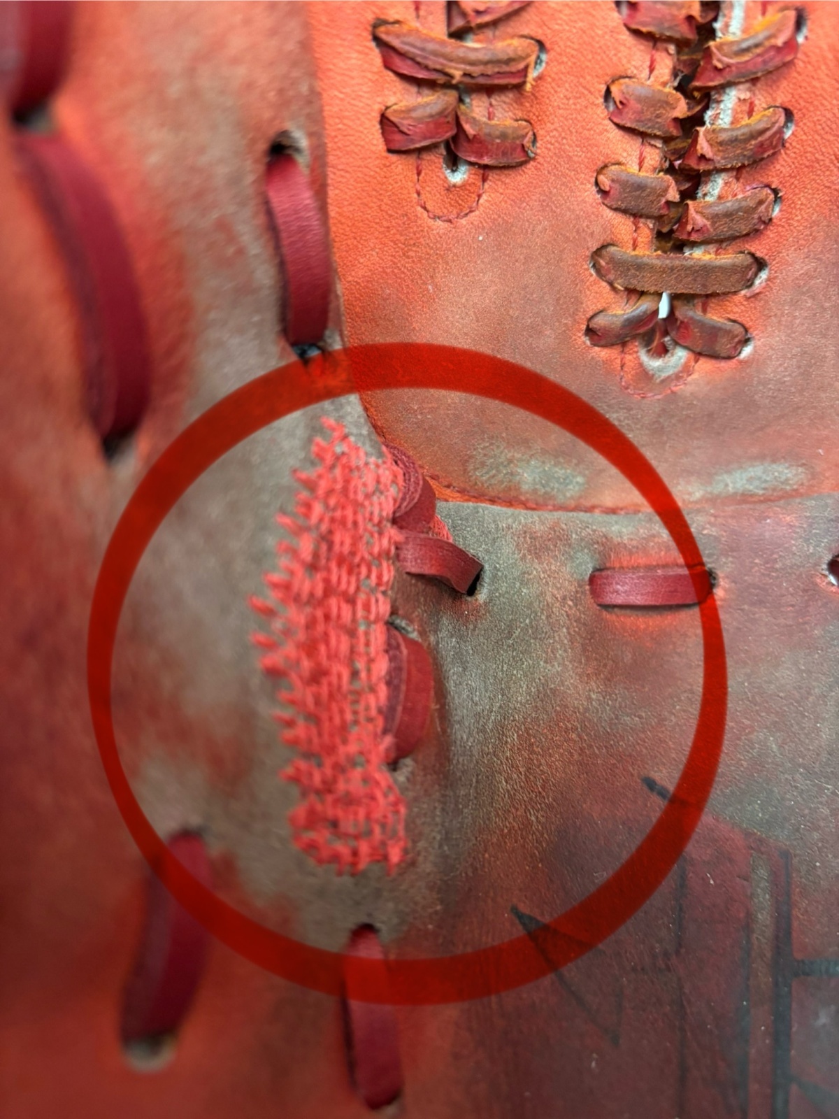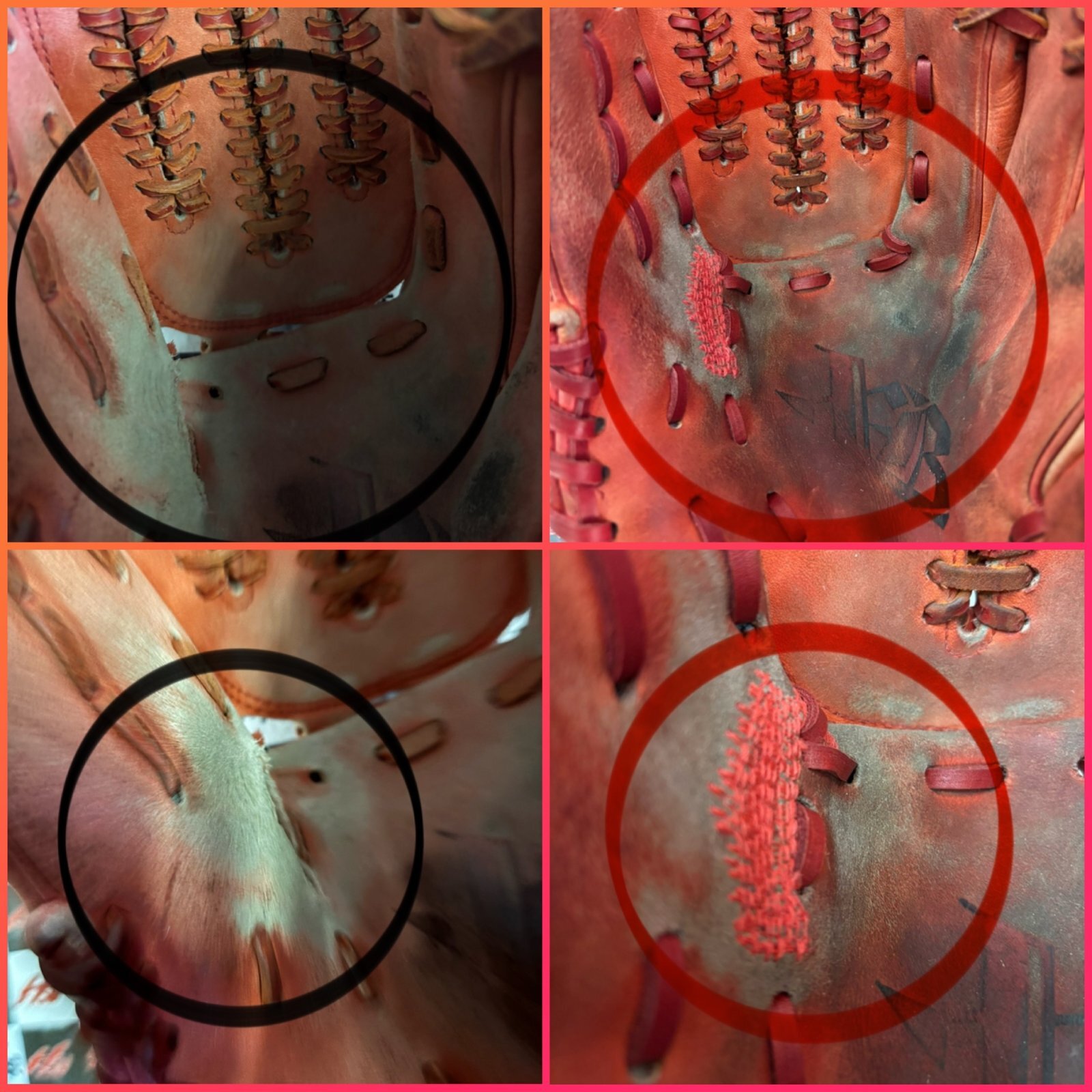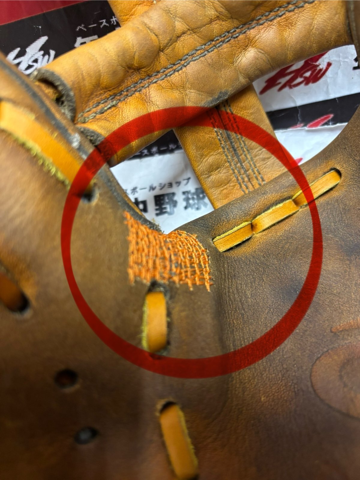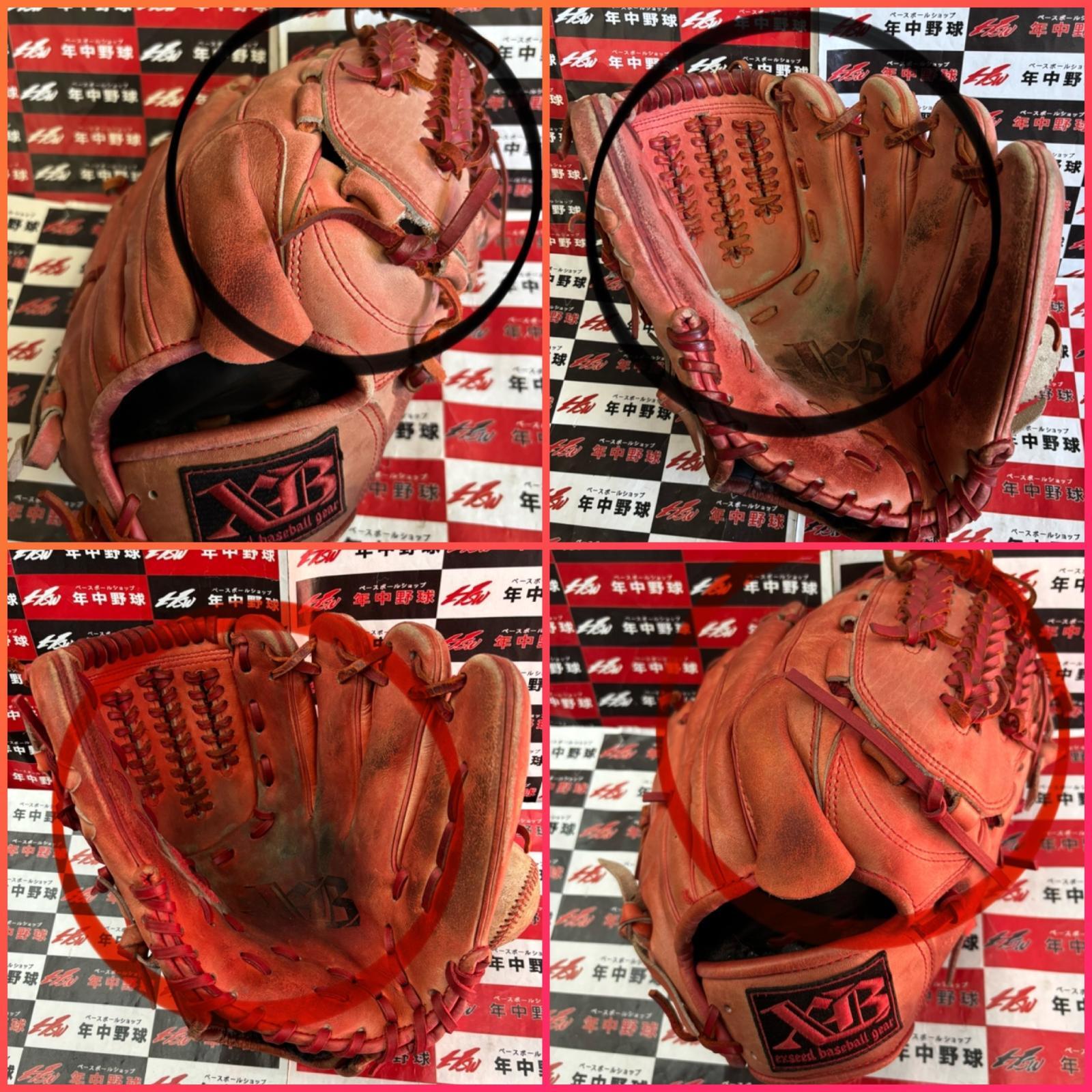 ウェブ関係の紐交換2本と捕球面の親指付け根部のギャザーミシン仕上げです!