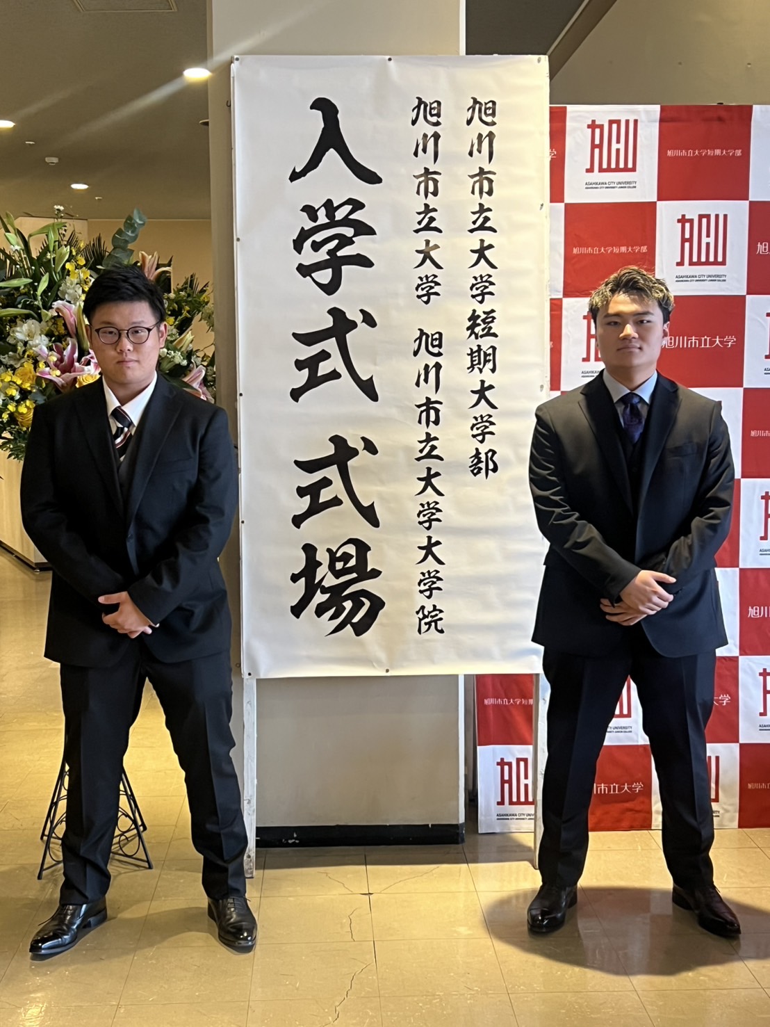 初めて買ってもらったスーツを着て、新たな友達もできました!これから4年間旭川で勉強して、立派な社会人になれるように頑張ります!