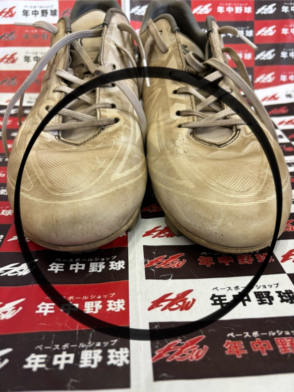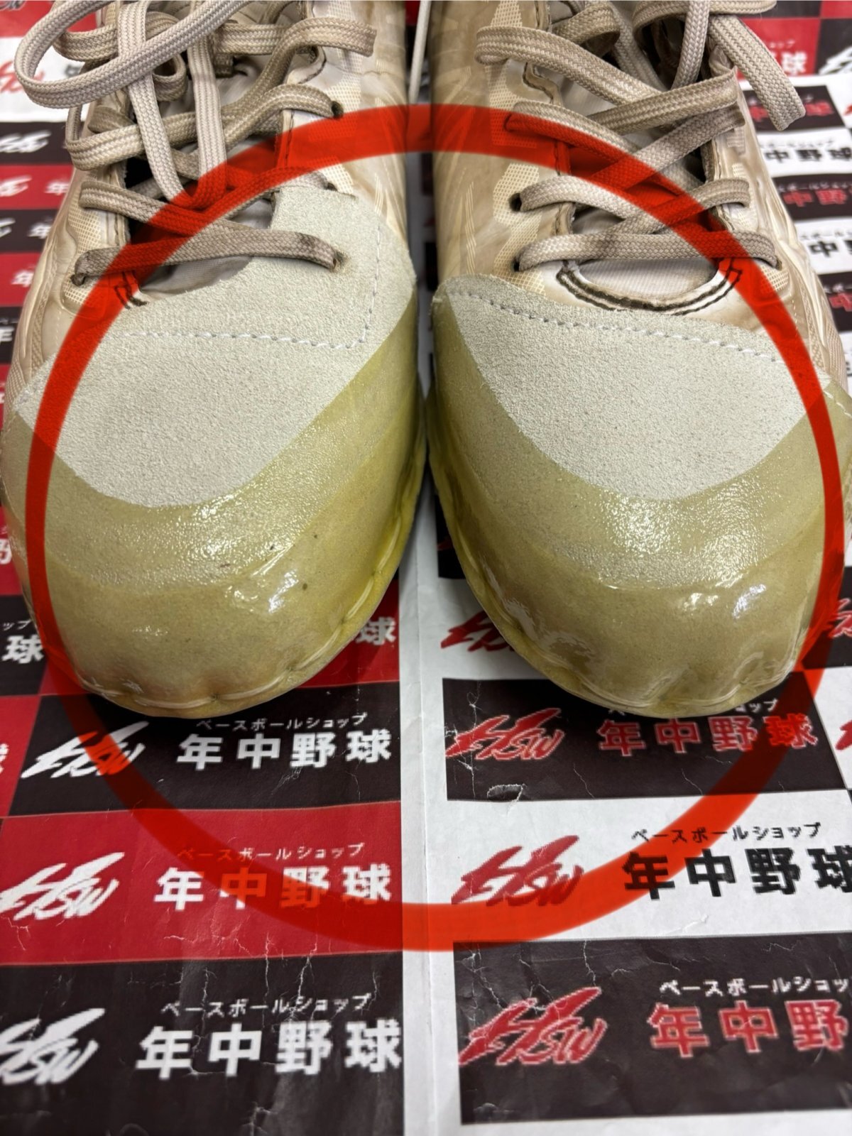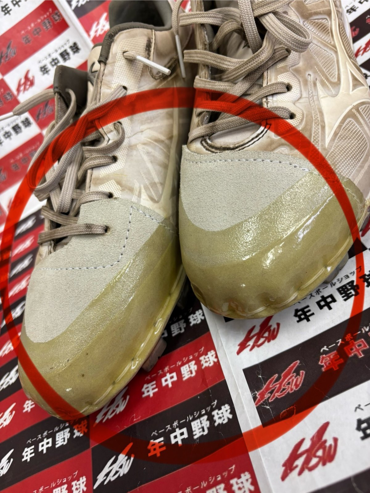 メンテナンスでは、旭川の高校へ越境進学したこれまたスクールOBのK澤君のスパイクをお預かりしまして、今回は『プロ仕様・一枚革手縫いP革・コバ金付き』にて完璧に仕上げました!!