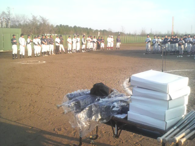 今日は寒かったですね!特に午後からは風は強く雨は降るわで大変でした!そんな中、地元の町営球場の看板付けに奮闘しました!!両翼92M、センター後方116Mの看板です。週末には中学の春季大会の方面予選も始まりますので丁度良かったですかね!?