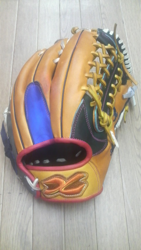 今日のグローブは当、年中野球の集大成とも言える逸品です。【寿司のまんぼう帯広西店】店長でもあるK林さんの外野手用グローブです。存分に色を使い分けました。仕上げはツーフィンガーのプロ仕上げです。土手抜き指開け手口狭くの先端広くの手法です。おそらく球際に強くなり、安定した守備力を発揮してくれる事と思います。