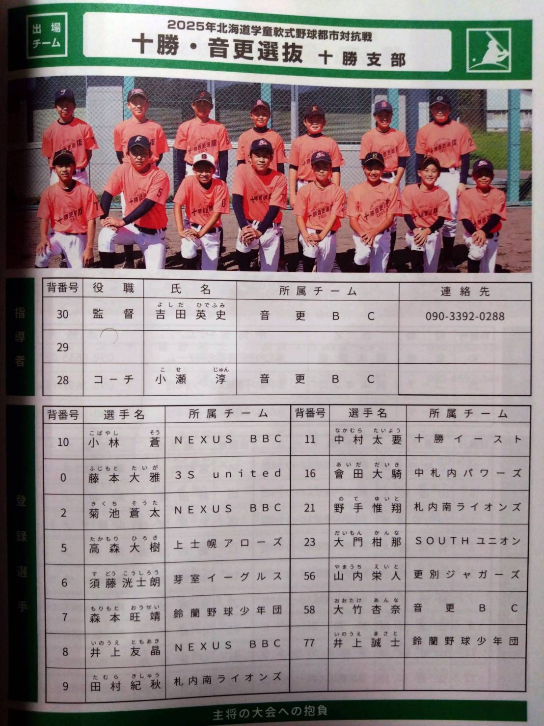 十勝・音更選抜は選手15名、吉田監督、小瀬コーチの総勢17名でのチーム編成です!