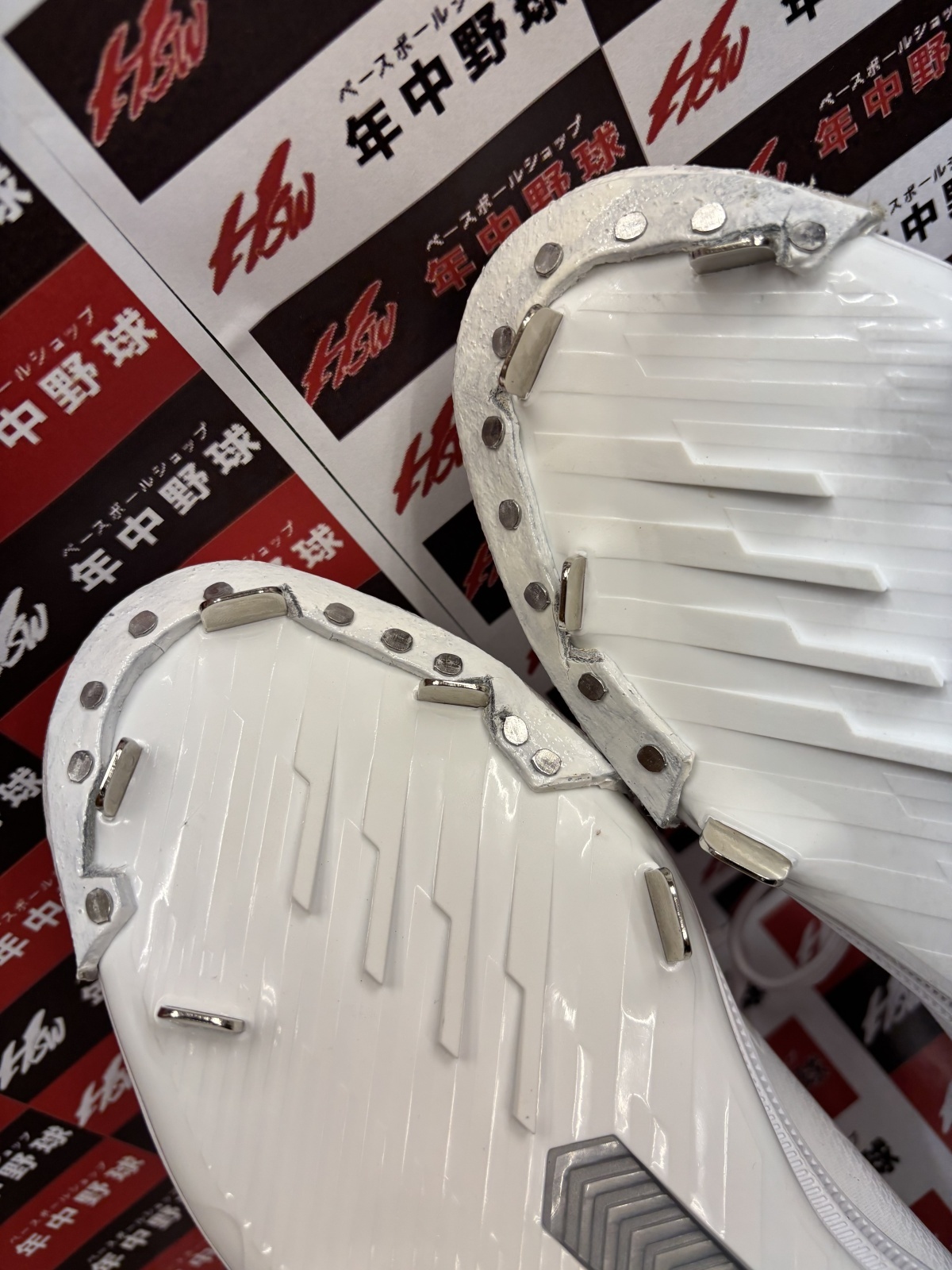 右足は投手用、左足は野手用の釘打ち縫いP仕上げにてコンプリートです!!